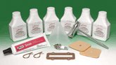 ? Includes: 6 bottles of premium 2 cycle engine oil (2.6 oz. ea., pre-measured to mix with a gallon of unleaded gasoline), 1 funnel, 1 spark plug, 2 felt air pads, 2 oz. tube of transmission grease, 1 transmission gasket, 2 tine retaining pins, and combo wrench.